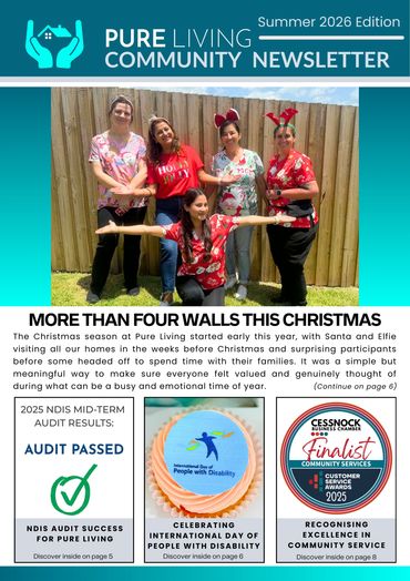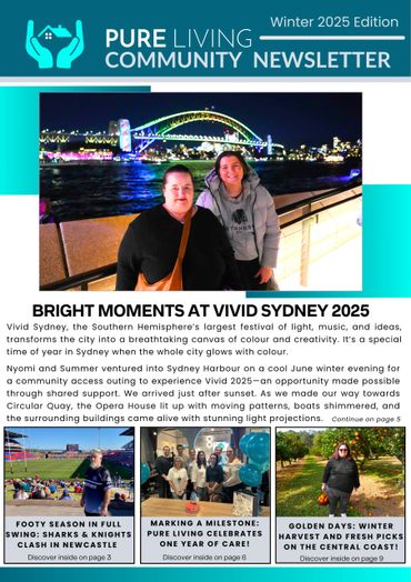 Pure Living’s Community Access newsletter shares real stories of progress, connection, and community. Each edition highlights participant achievements, community experiences, and the everyday moments that bring our purpose to life.